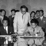 Chủ tịch Hồ Chí Minh cùng các đại biểu đến từ Anh, Mỹ, Trung Quốc trong buổi Lễ ký kết Hiệp định Sơ bộ vào ngày 6 tháng 3 năm 1946.